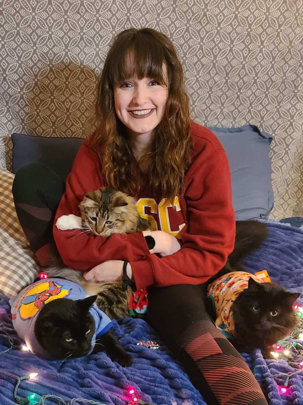 While life can be a lot, and something is seemingly always looming, the true minions carrying the load are always near. As I write, Luna’s sleeping belly-up and in arm’s reach. Margo is sprawled on the floor behind me, and Ginny is hidden under the bed, forgetting that she’s got to tuck her backside in if she doesn’t want to be seen. These kids work hard to keep their mom stable. When life gets overwhelming, as a non-smoker, I have said more than once, “I need to sniff a cat,” and immediately bury my face into their fur. So they might not pay rent, but they absolutely pay their dues and influence this blog more than you can imagine.
